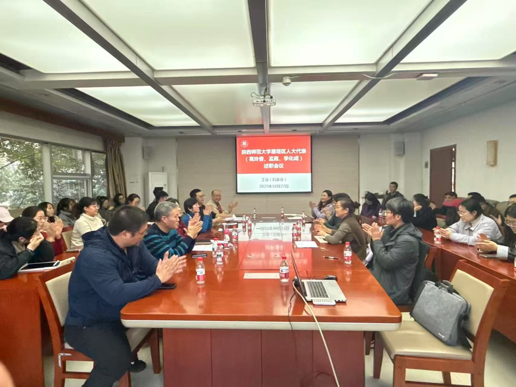 10月27日下午,我校所当选的西安市雁塔区第十八届人大代表向选区选民述职会议在雁塔校区综合体育馆会议室举行。从我校选区推选的人大代表高玲香、孟霞、李化成进行现场述职,学校40余名师生作为选区选民代表听取了三位代表的述职报告。述职会议由校工会主席蒋毓新主持。