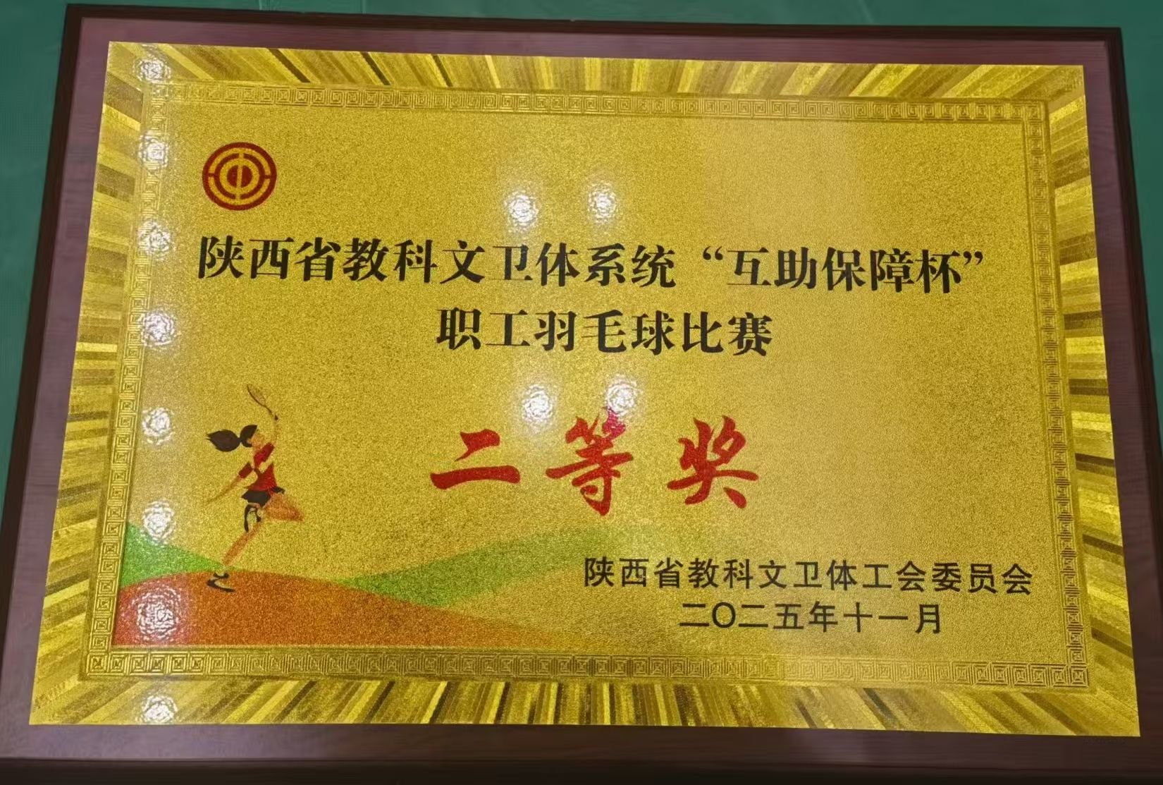 在11月2日落幕的“中国梦·劳动美——凝心铸魂跟党走 团结奋斗新征程”2025年陕西省教科文卫体系统“互助保障杯”职工羽毛球比赛中,我校教职工羽毛球队团结一心、奋勇拼搏,最终从全省57支参赛队伍中脱颖而出,荣获比赛二等奖,展现了我校教职工良好的精神风貌和竞技水平。