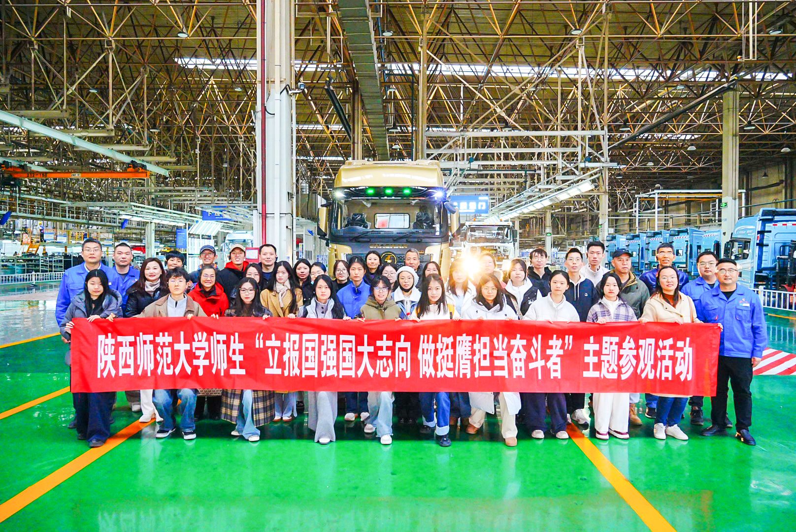 校妇委会副主任兼工会副主席靳春泓谈到:师生们深入总装车间等生产一线,亲眼见证了重型卡车在高度自动化的生产线上高效组装完成,感受到了“大国重器”的制造水准和“敬业、笃学、诚信、创新”的企业精神。这堂生动的“行走的思政课”,让师生深刻体会到国家高端装备制造业由“中国制造”向“中国智造”乃至“中国创造”的奋进历程,以及陕汽作为民族工业脊梁的担当。活动极大地激发了师大学子将个人理想融入国家发展伟业的报国情怀,我们将砥砺前行,为培养更多担当民族复兴大任的时代新人贡献力量。