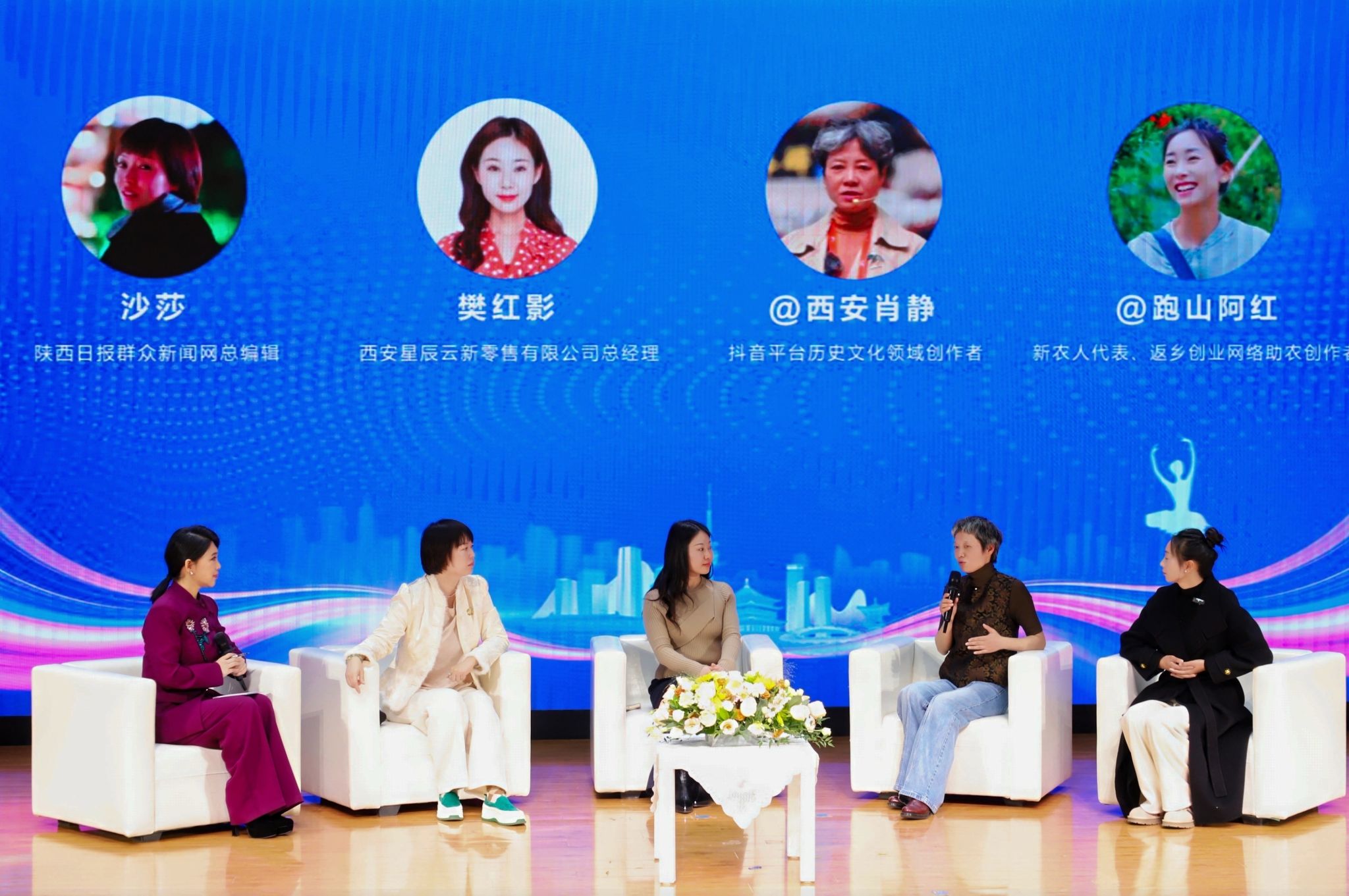 活动第一环节播放了主题视频,随后发布了2025年度陕西巾帼好网民名单,并向社会各界发出“争做巾帼好网民”的积极倡议。在主旨分享环节,我校新闻与传播学院副院长王敏芝做了“数字时代网络空间赋予女性的发展机遇与挑战”分享;咸阳市反诈中心三级警长韩佳颐讲解了“在信息浪潮中守护自己”的实用知识。圆桌对话汇聚了群众新闻网总编辑沙莎、西安星辰云新零售有限公司总经理樊红影、抖音平台历史文化领域创作者肖静、新农人代表返乡创业网络助农创作者阿红等多位嘉宾,共同探讨女性在网络中的力量与担当。