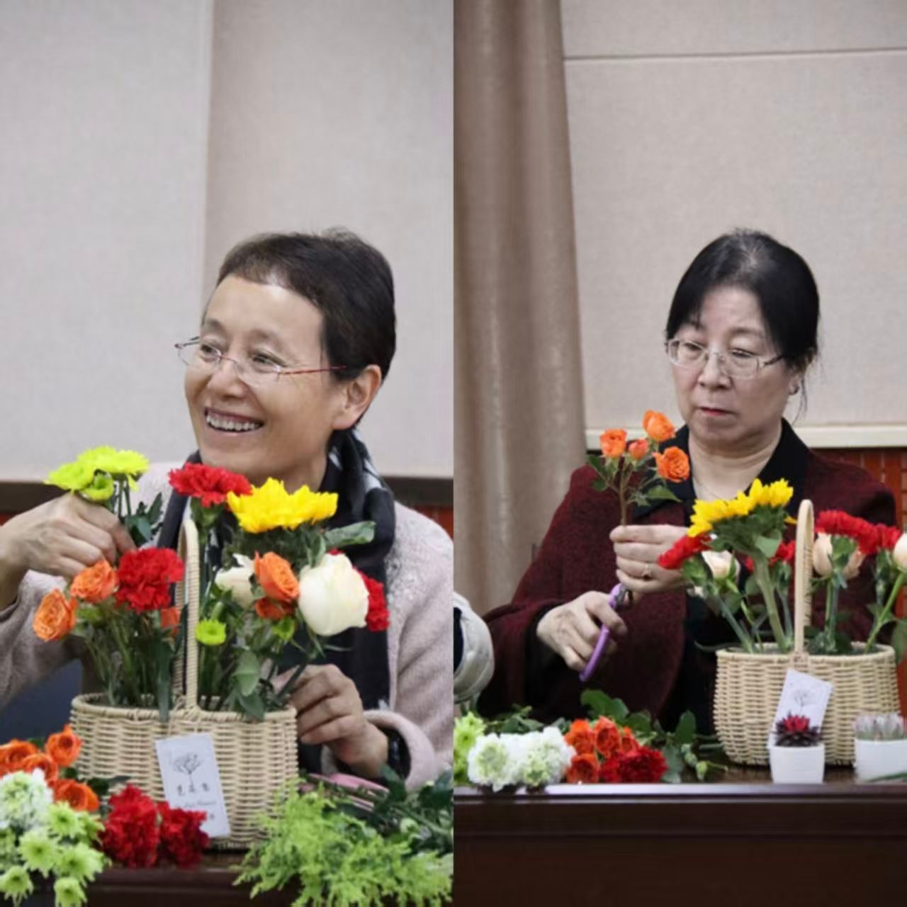 图1:认真学习和感受花艺魅力的老师们