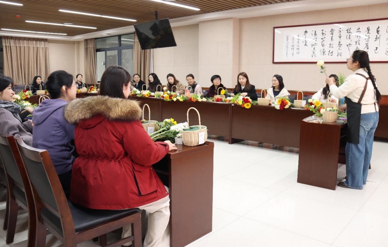 为庆祝“三八”国际劳动妇女节,丰富女教职工精神文化生活,马克思主义学院工会近日在学院大中小会议室举办题为“芳华绽放·花香致美——三八国际妇女节花艺沙龙”插花活动。此次活动得到了全院广大女教职工的积极响应,40位女教职员工积极报名,参与了插花活动。
