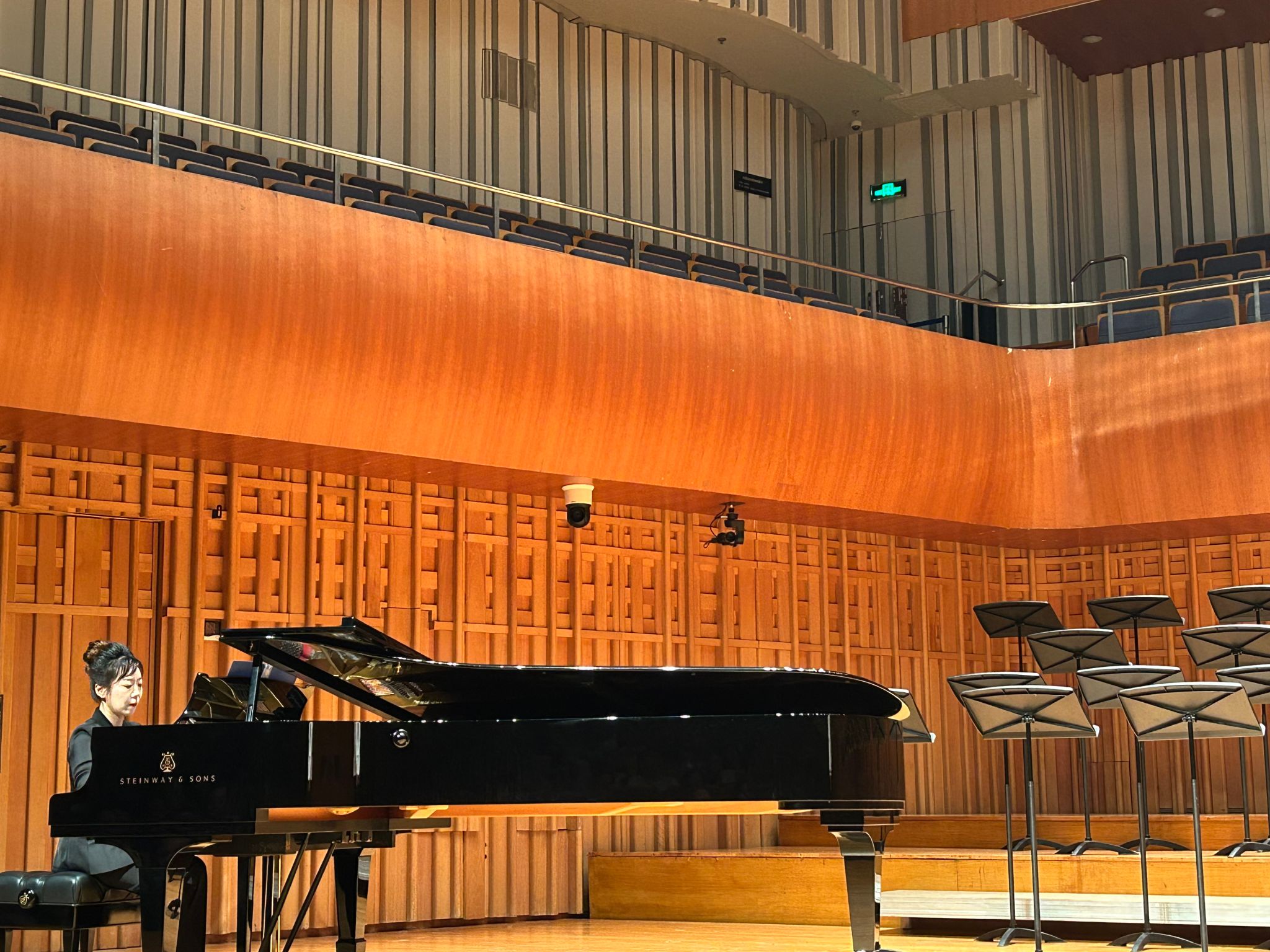 此次演出,同样来自我校音乐学院的郝亮亮老师爱人侯玥彤,作为钢琴伴奏,全力支持本场演出。