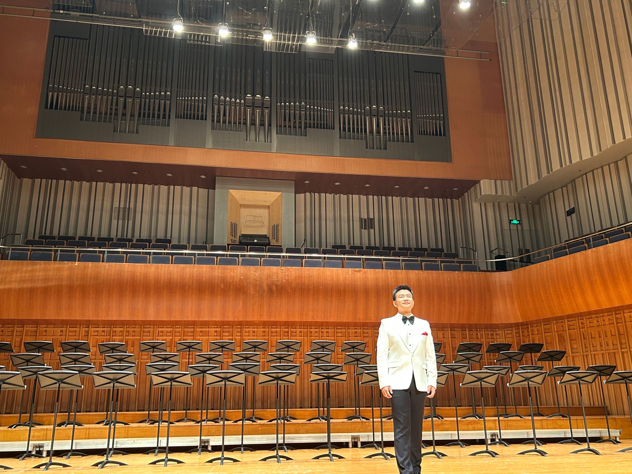 我校音乐学院青年教师、男高音歌唱家郝亮亮受邀登台,以《好老师·大先生》为主题倾情演唱。