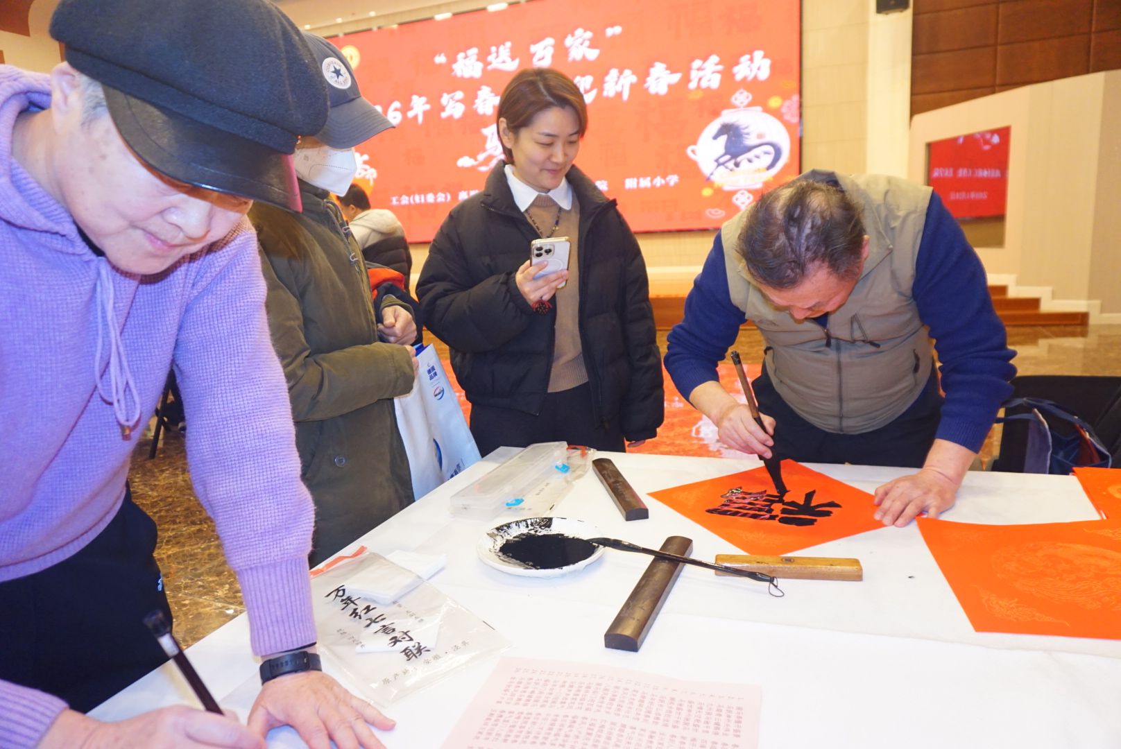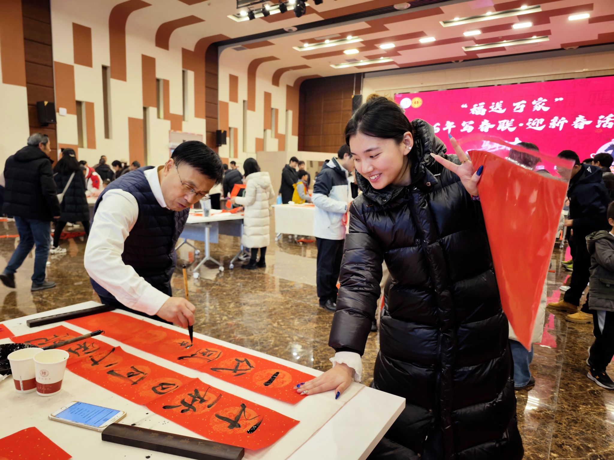 校党委副书记卢胜利莅临活动现场,看望参与春联书写的书法名家和书法爱好者;广大教职工及家属纷纷前来观摩,踊跃领取春联和“福”字。现场气氛热烈,欢声笑语不断,送出新春对联、福字千余幅,大家在红火热烈的传统年味中,共同迎接马年新春佳节的到来。