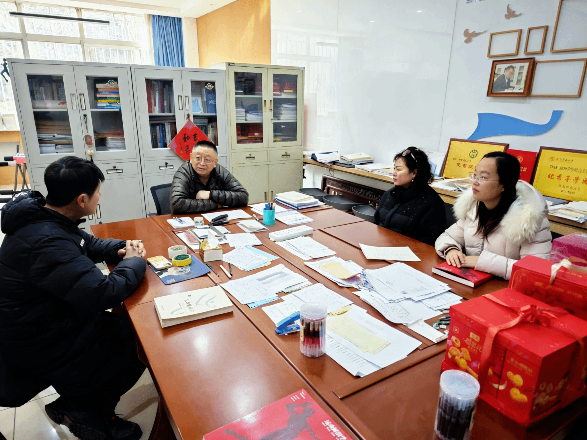 在中国科学院院士、全国先进工作者、化学化工学院房喻教授工作室,他与卢胜利一行亲切交流,回顾了学校近阶段的发展建设情况,并对学校如何进一步实现高质量发展予以展望;在全国先进工作者、文学院张新科教授家中,他介绍了近阶段个人的工作生活情况,并感谢学校多年来在各方面给予他的关心和支持;在陕西省先进工作者、物理学与信息技术学院林书玉教授工作室,他介绍了团队在声学技术领域取得的新突破及教书育人方面的新成果,表示会坚持精益求精的工作态度,努力为学校发展建设持续作贡献;在全国师德标兵、模范教师,体育学院田振军教授工作室,他介绍了学院和团队这几年在专业领域的发展情况,回顾了兼职履职学校工会、教代会相关岗位的工作情况,并祝愿学校、工会事业发展越来越好。