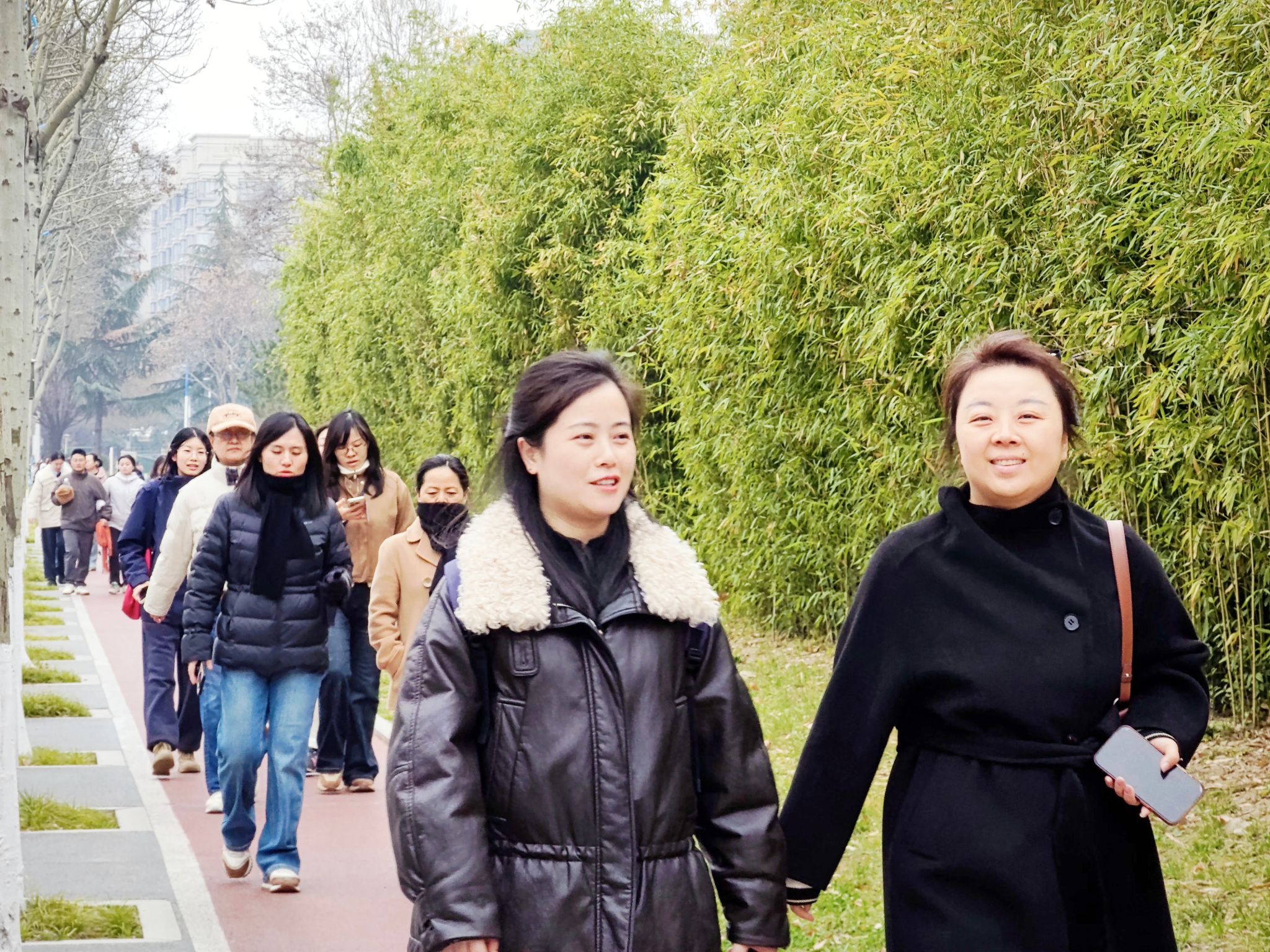 3月8日下午,以“奋进‘十五五’ 巾帼启新程”为主题的女教职工阳光校园健步走活动在长安、雁塔两校区同时开展。全校1600余名女教职工积极参与,在春风浸润中健步校园,汲取奋进力量,感受运动快乐。