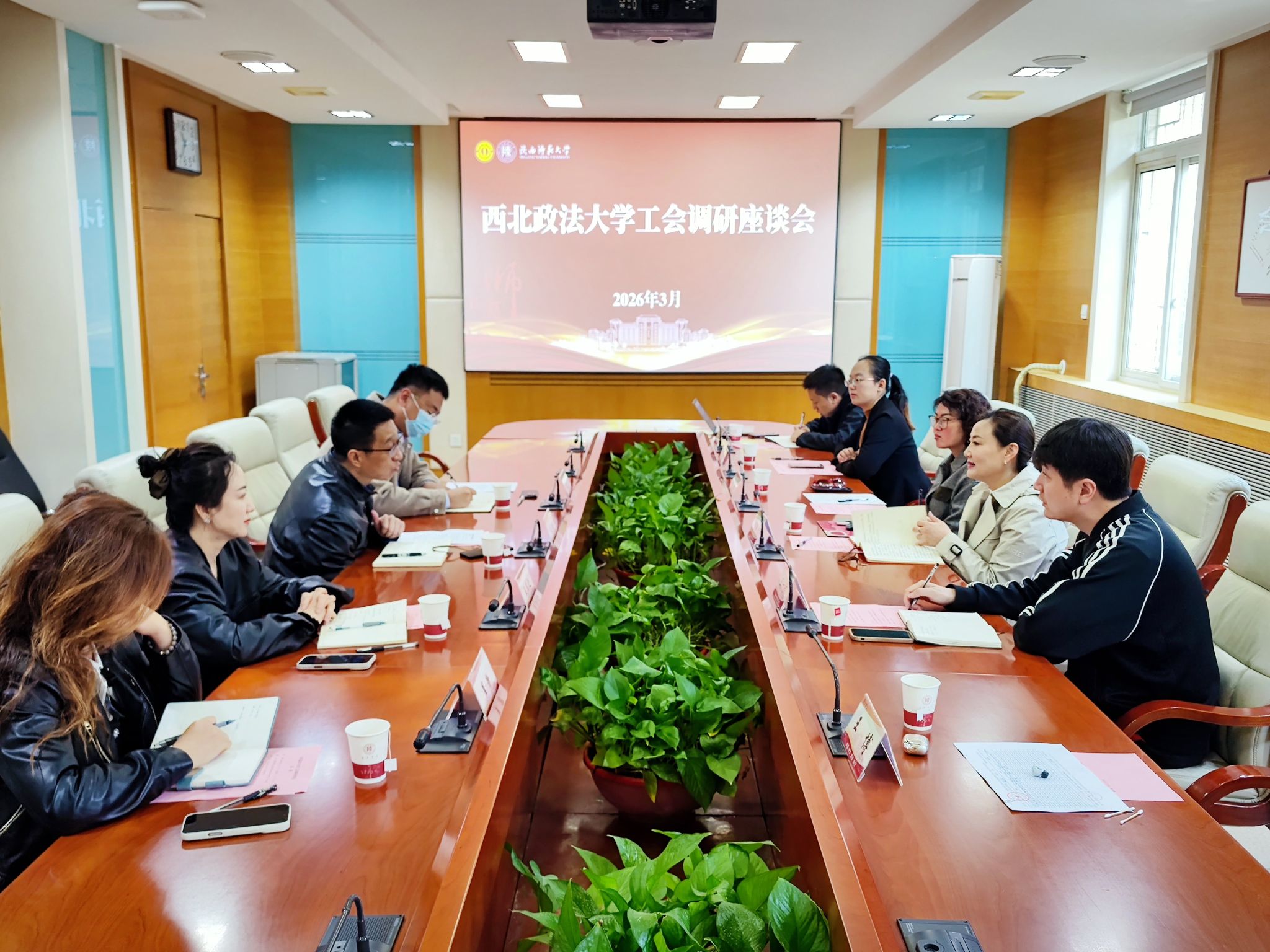 3月31日,西北政法大学工会主席戴鲲一行来我校调研工会工作,校工会(妇委会)班子成员及相关工作人员参加座谈交流。