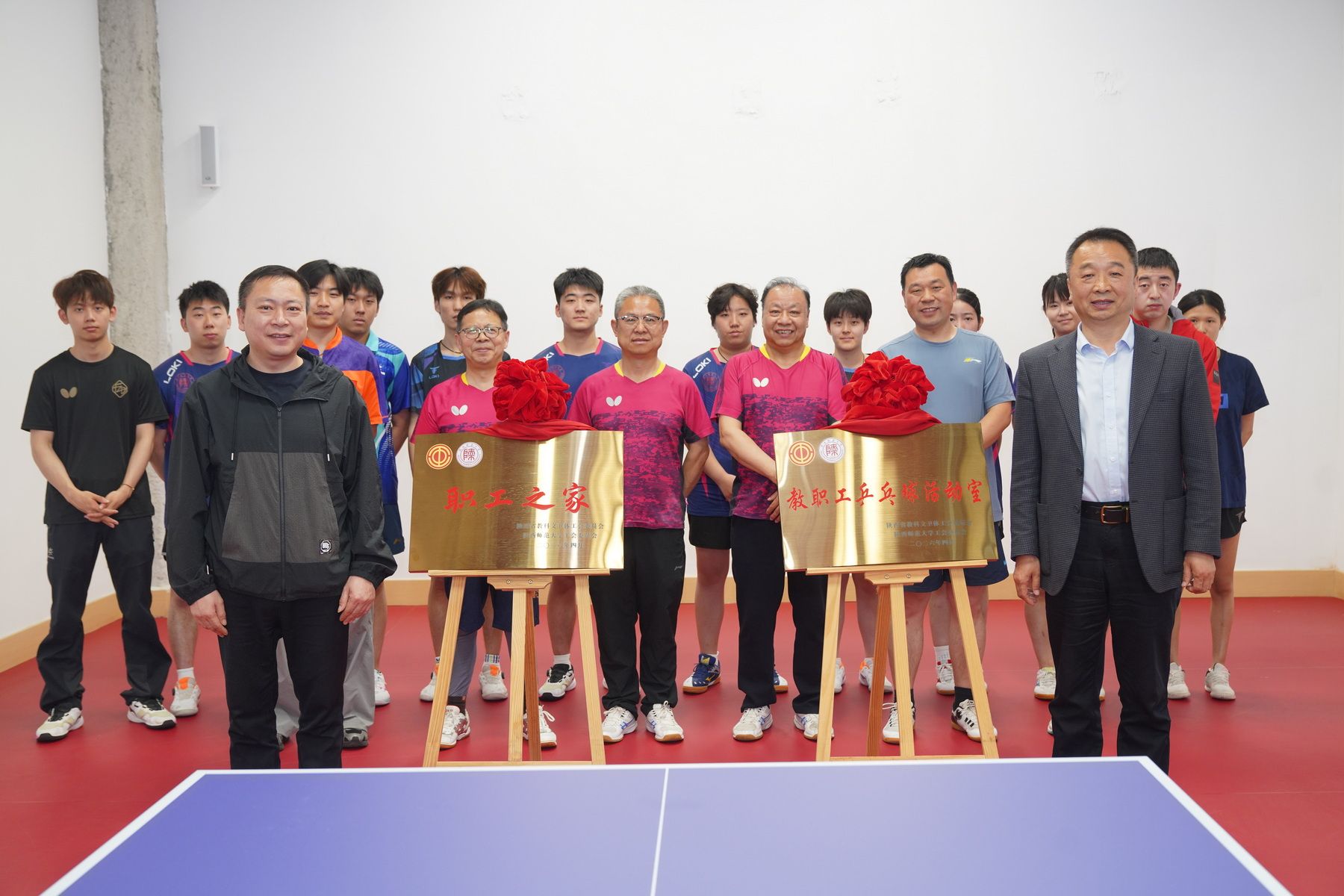 4月14日,我校长安校区职工之家(教职工乒乓球活动室)揭牌仪式在体育训练中心举行。校党委副书记卢胜利,陕西省教科文卫体工会副主席夏明文,校工会、体育学院相关负责人出席活动,教职工乒乓球队、体育学院学生代表参加活动。